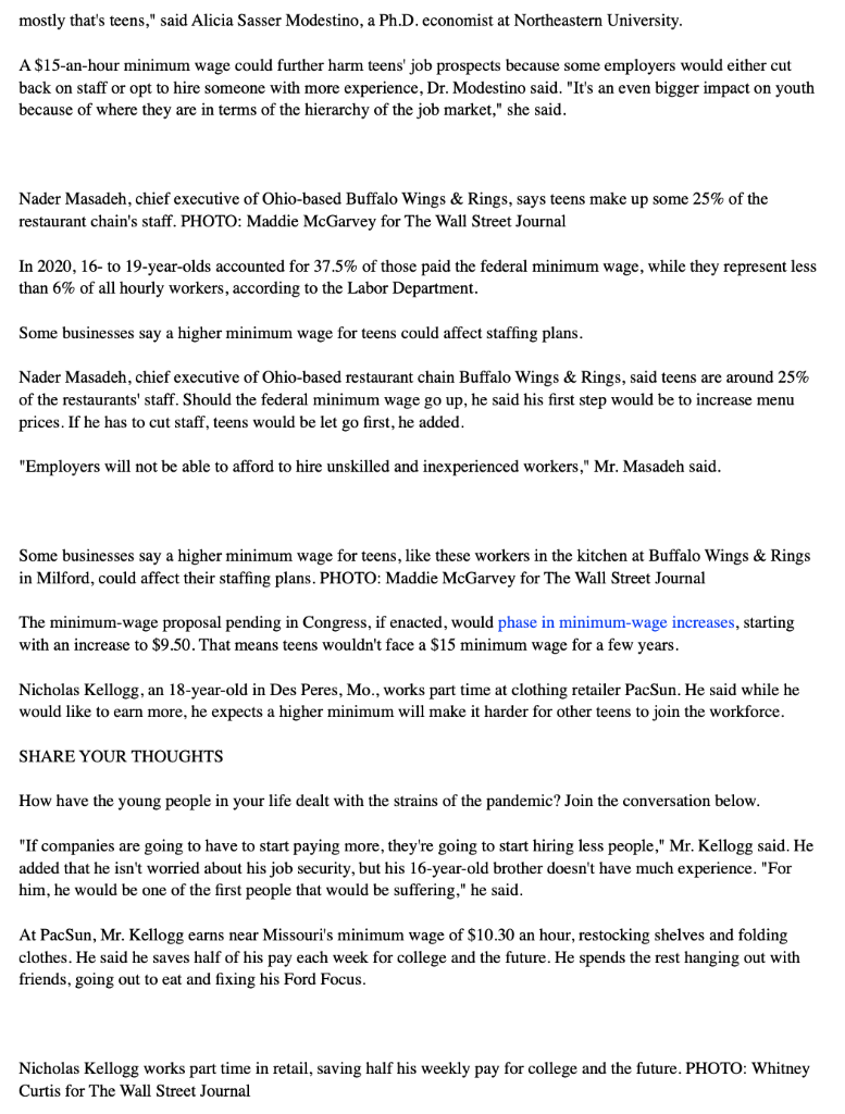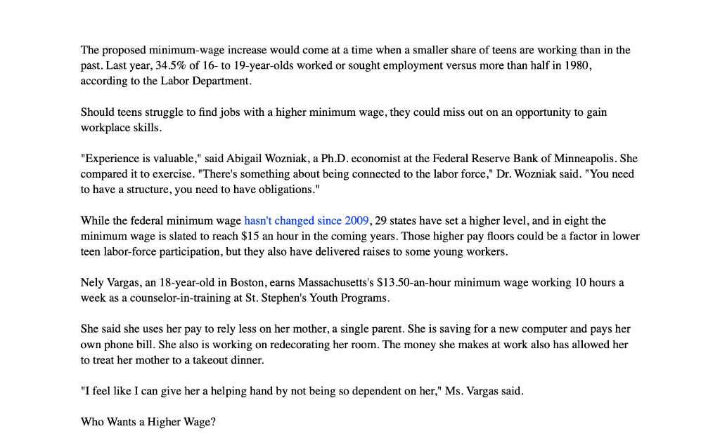 Solved Raising The Federal Minimum Wage To 15 An Hour Would Chegg Com